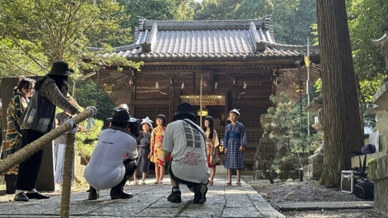 滋賀ロケサポーターのエキストラの子どもたち8名が参加した神社のシーンは、同じく米原市の湯谷神社で撮影されています。昔懐かしいノスタルジックな雰囲気が満載です。