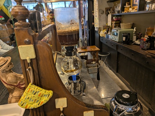 昭和37年より営業している老舗の珈琲店。 昭和レトロな趣もある店内の装飾は必見。 豆挽きも店内で行なっている。 サイホンで抽出するコーヒーこだわりの珈琲を楽しむことが出来る。 撮影に関しては、貸し切りなども相談可能。