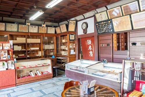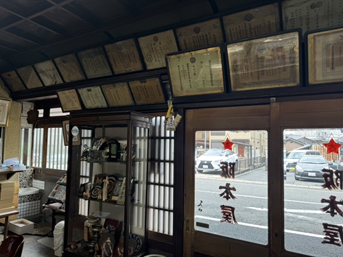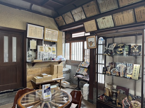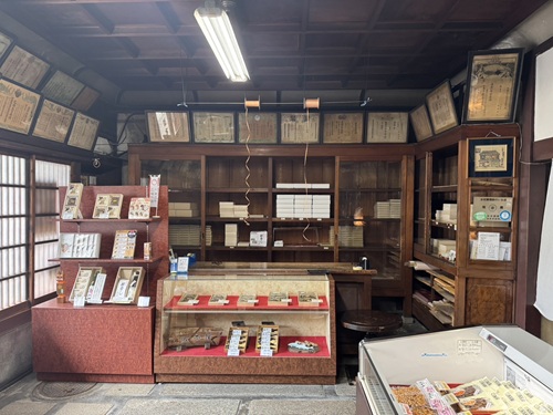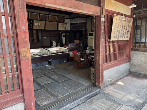 当店は明治2年に鮒寿司の製造・販売専門店として創業し、昭和11年に現在の形となりました。外観は町家造りで周囲の景観と調和しつつ、接客・販売スペースには洋風の要素を取り入れるなど、人に見せる空間として工夫を凝らしています。2013年に登録有形文化財に登録。